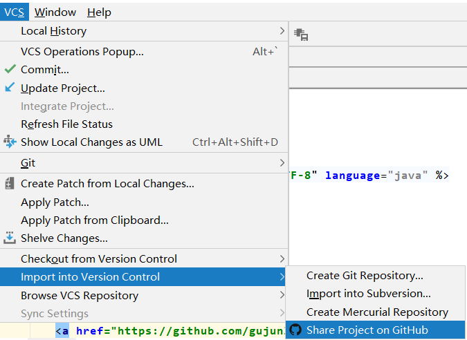 # 方式三:将 idea 中的项目代码直接提交到 github 中