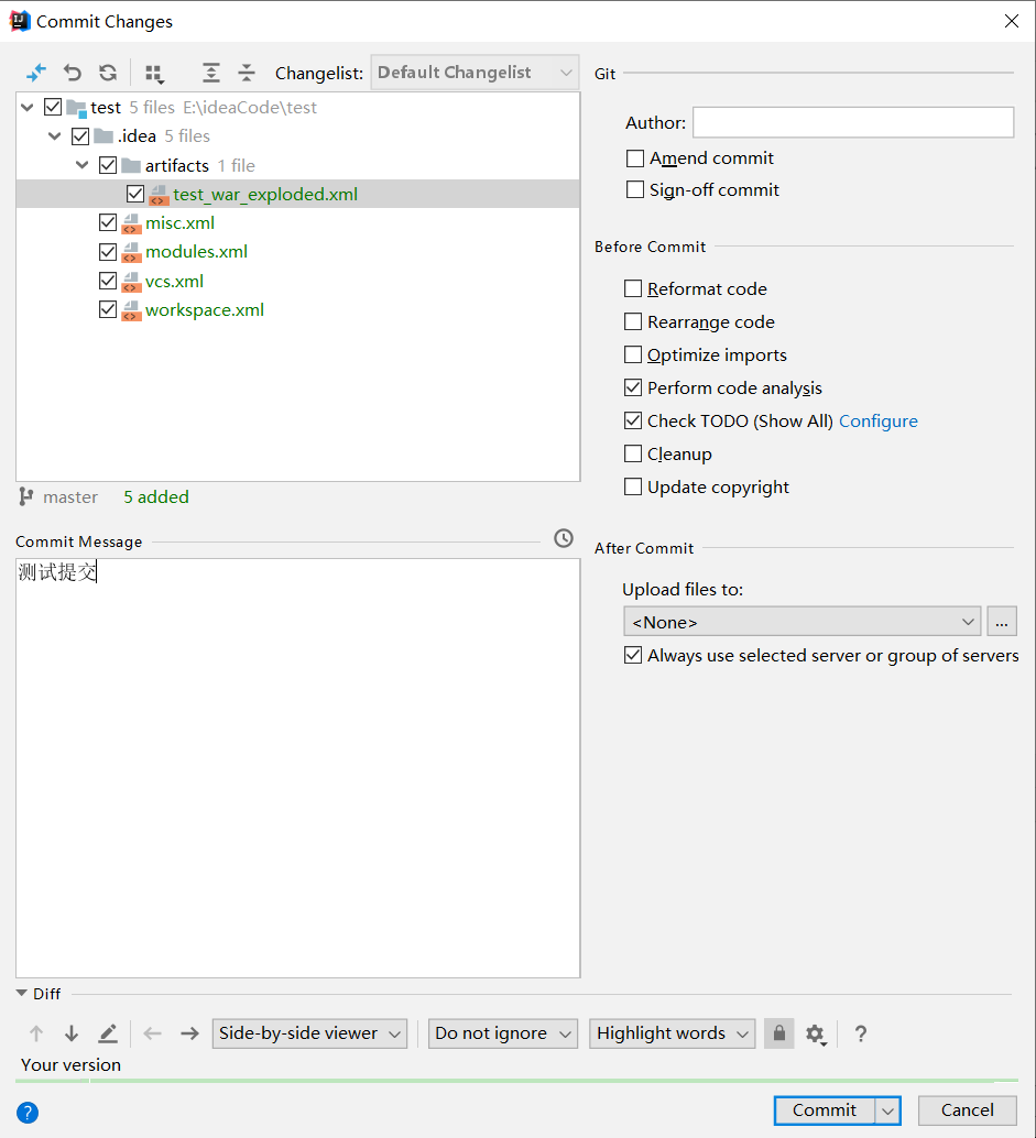 # 问题一:在 idea 中, 当点击提交的时候出现提示信息: