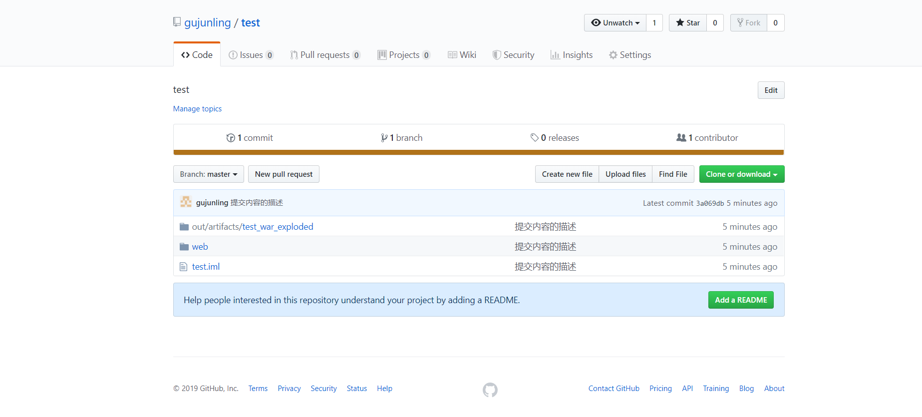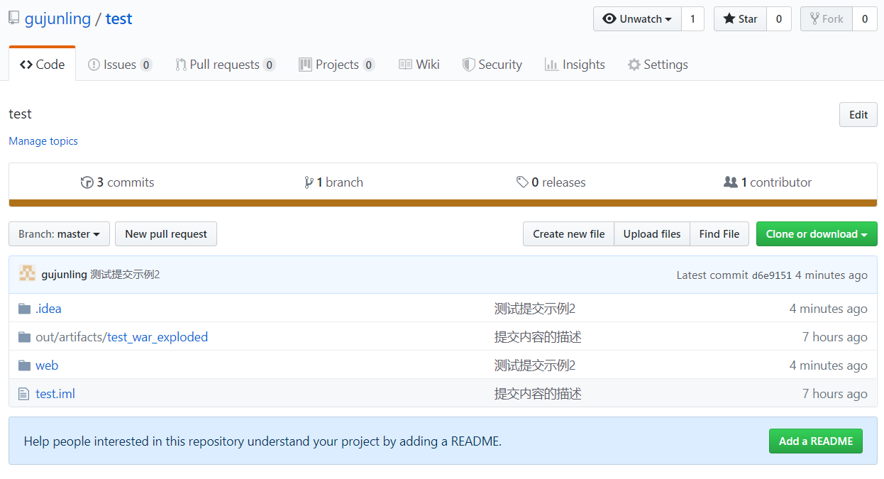 当提交成功之后就可以在 github 服务器端看到你本次提交的内容了!