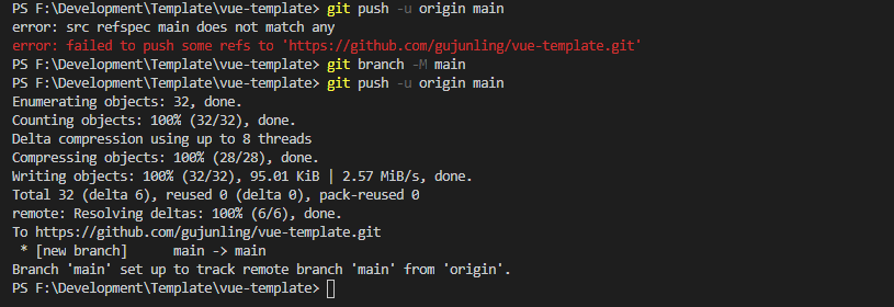 若提交到master主分支会出错,使用命令git branch -M main 来修改主分支为main即可。
