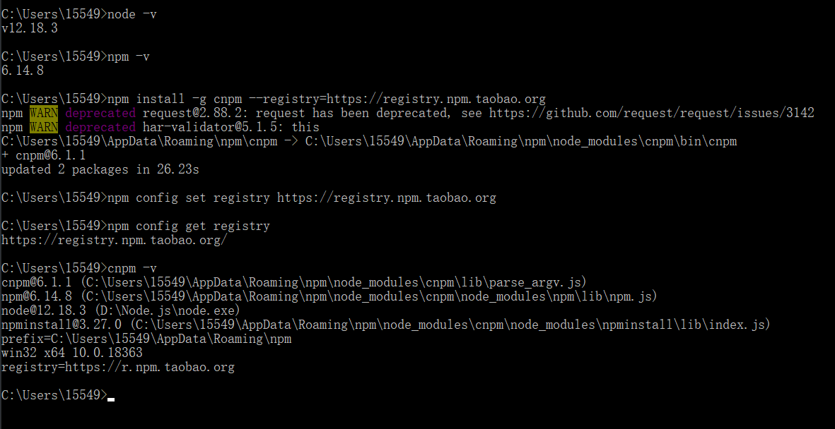 当然,也可以安装 cnpm,通过 cnpm 来执行 npm 命令,安装 cnpm 命令如下