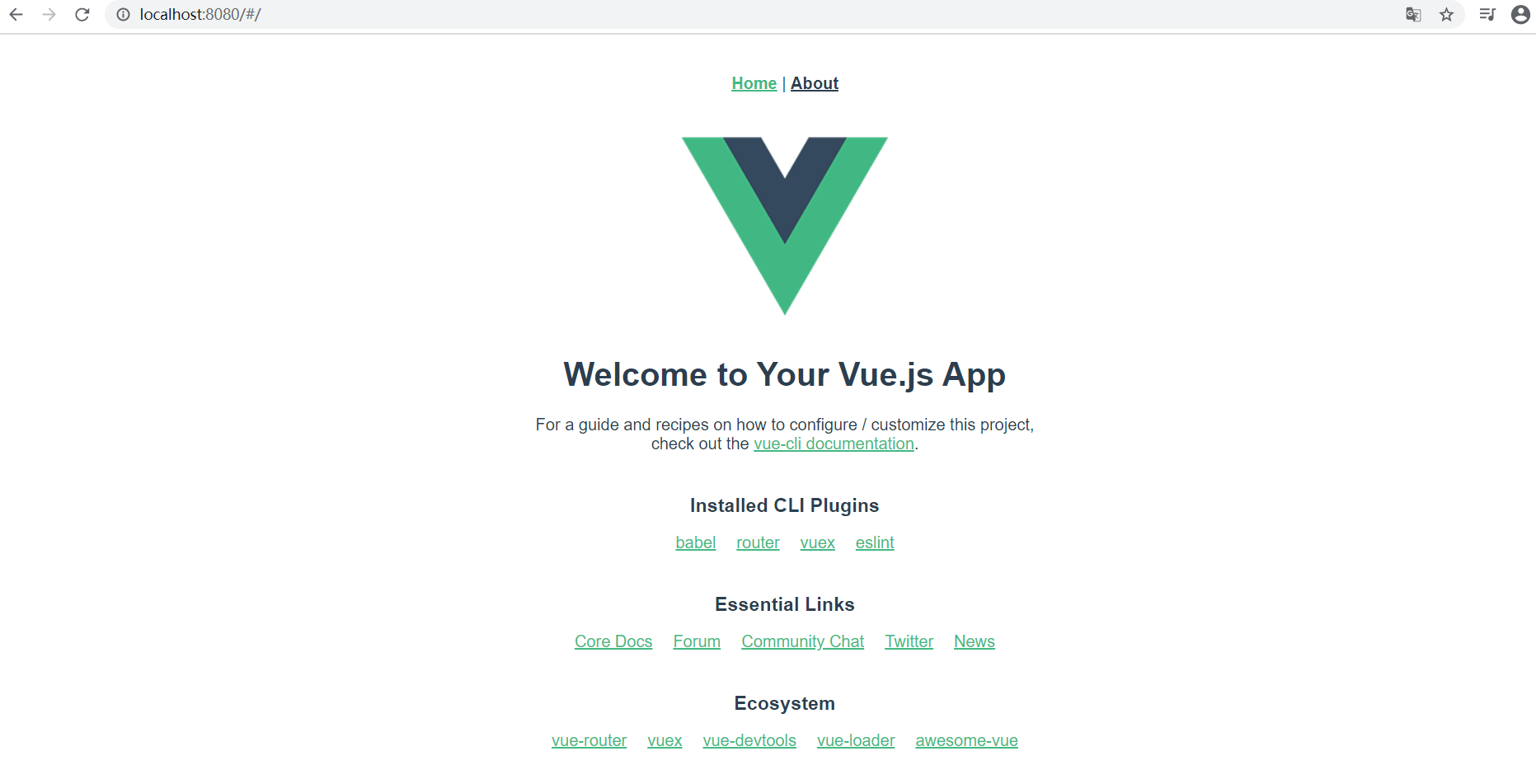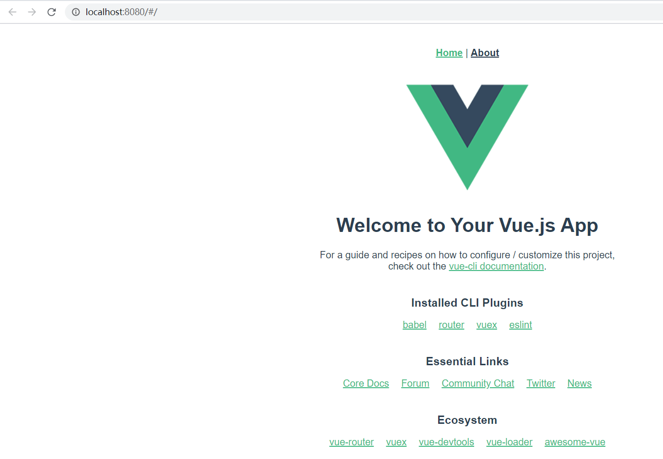 在浏览器中打开上述 Vue 项目部署的地址,看到下图所示即表示项目创建运行成功。