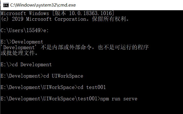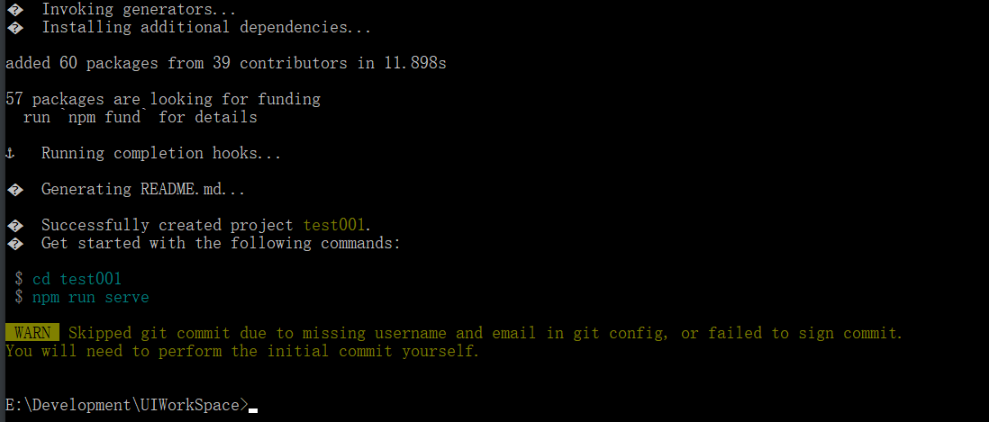 vue create test001 //创建项目,test001位项目名,项目名中不允许出现大写字母