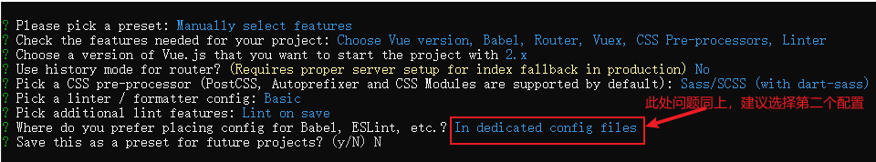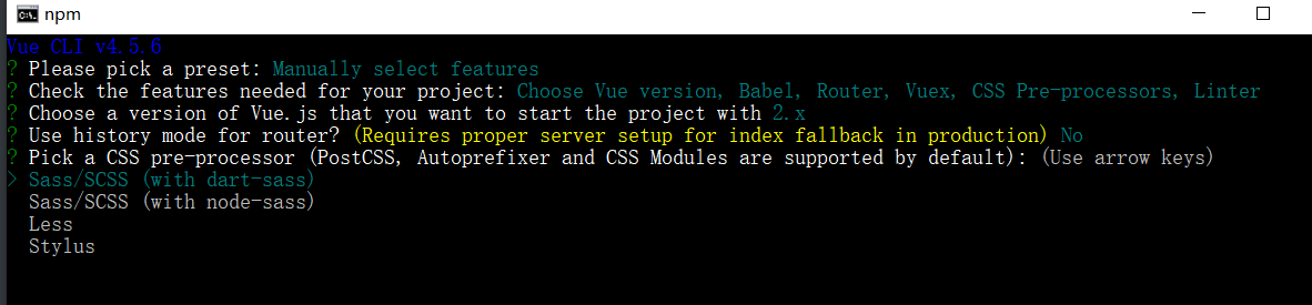此处建议选择 Sass/SCSS(with dart-sass),即直接选择回车即可。