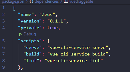 项目执行命令查看(vue-cli-service serve 对应的前面的属性即为 npm run 后面的属性,例如,下图中项目执行命令为 npm run serve )