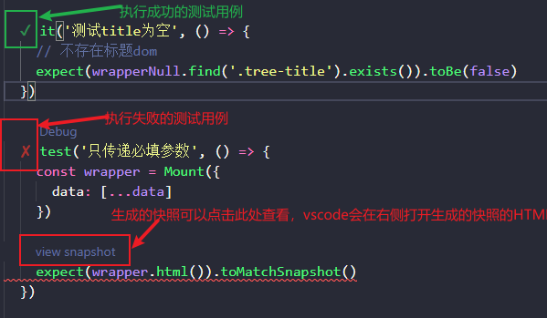 在VsCode编辑器中,可以通过安装Jest插件,它可以在我们不运行 npm run test:unit命令的时候就提示测试用例是否通过。