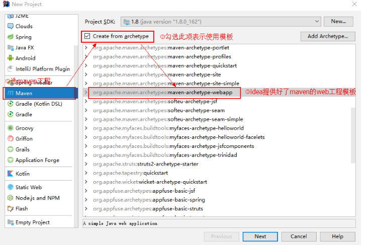 - 选择 idea 提供好的 Maven 的 web 工程模板