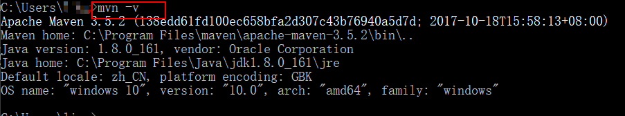 测试 Maven 的环境变量配置是否成功,在命令行窗口,输入