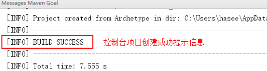 - 点击 next,next,Finish,等待片刻,项目创建完成,控制台中出现下图信息表示项目创建成功。