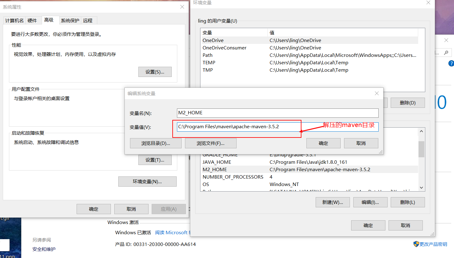 配置系统变量 M2_HOME,选择此电脑右键--->属性--->高级系统设置--->环境变量 --->在系统变量中选择新建--->在变量名中输入 M2_HOME,在变量值中输入自己解压的 Maven 的路径。